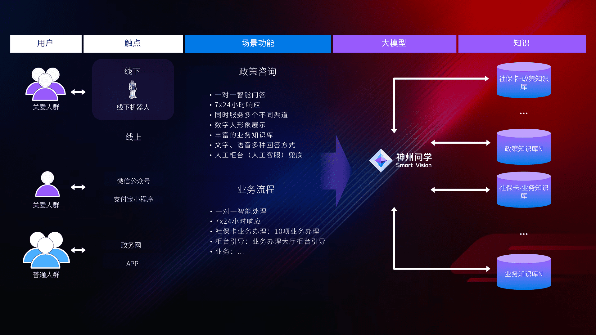 • 线上线下全覆盖:线上提供微信公众号、、支付宝小程序、、政务网、、、app多种渠道,,,与线下机器人形成完整服务体系。。